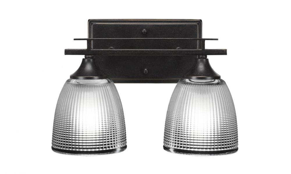 Toltec Lighting 132-DG-500 Uptowne 2 Light Bath Bar Shown In Dark Granite Finish With 5 Clear Ribbed Glass