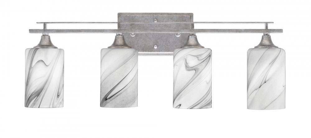 Toltec Lighting 134-AS-3009 Uptowne 4 Light Bath Bar, Aged Silver Finish, 4 Onyx Swirl Glass