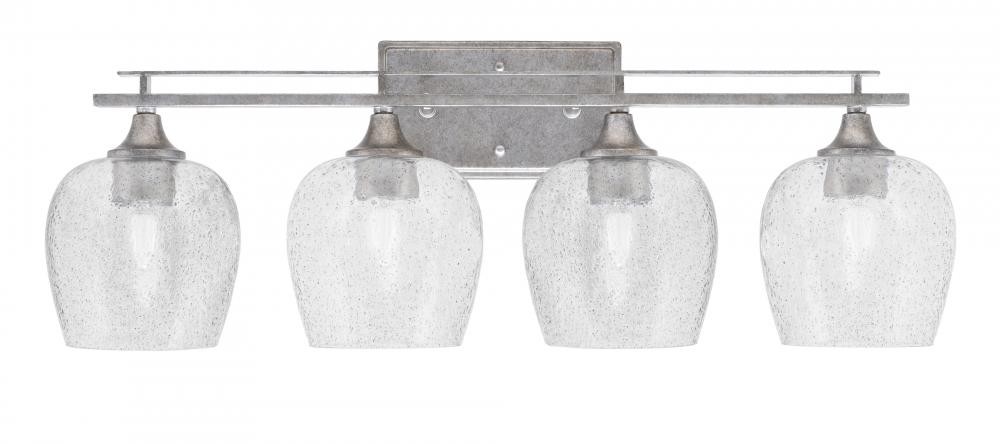Toltec Lighting 134-AS-4812 Uptowne 4 Light Bath Bar, Aged Silver Finish, 6 Smoke Bubble Glass