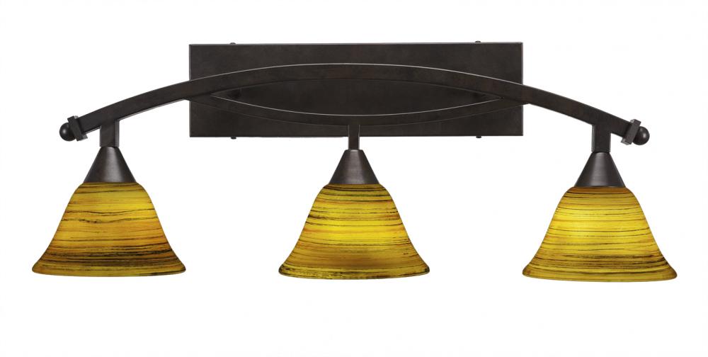 Toltec Lighting 173-BRZ-454 Bow 3 Light Bath Bar Shown In Bronze Finish with 7 Firr? Saturn Glass