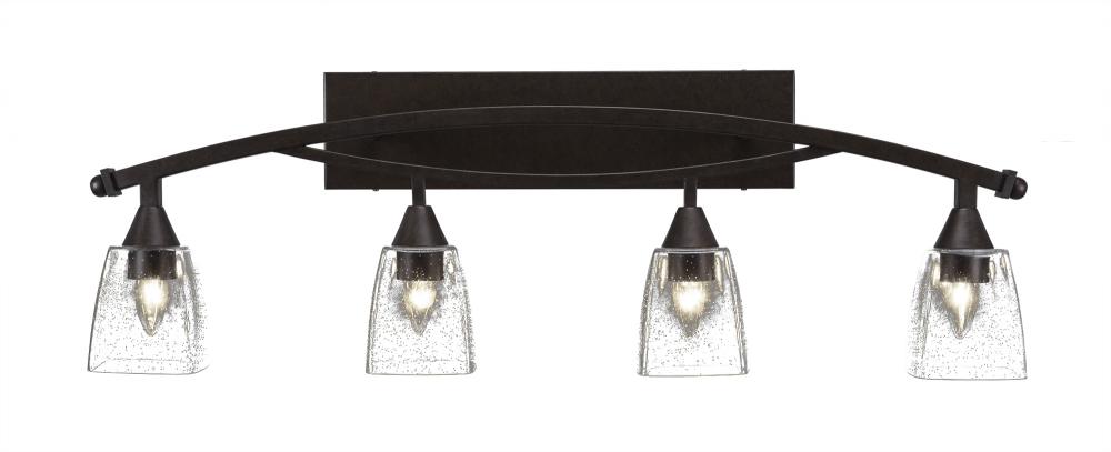 Toltec Lighting 174-BRZ-461 Bow 4 Light Bath Bar Shown In Bronze Finish with 4.5? Square Clear Bubble Glass