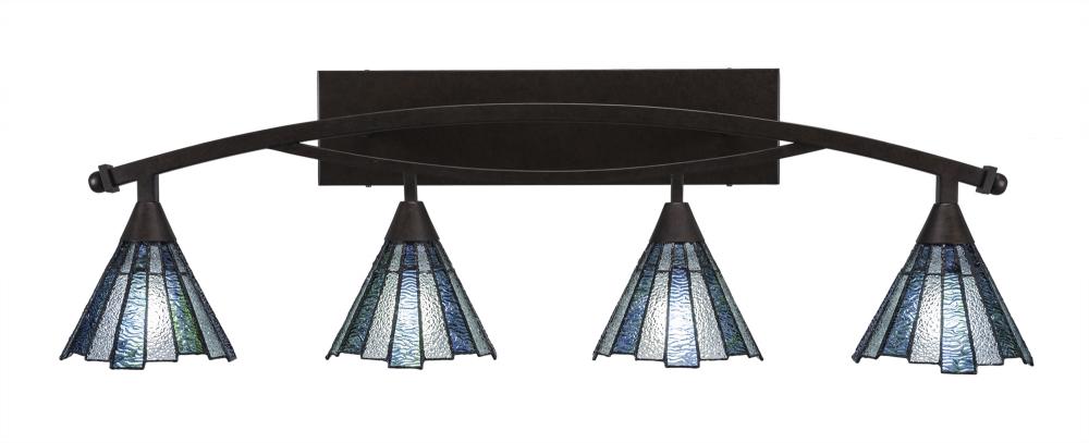 Toltec Lighting 174-BRZ-9325 Bow 4 Light Bath Bar Shown In Bronze Finish with 7 Sea Ice Art Glass