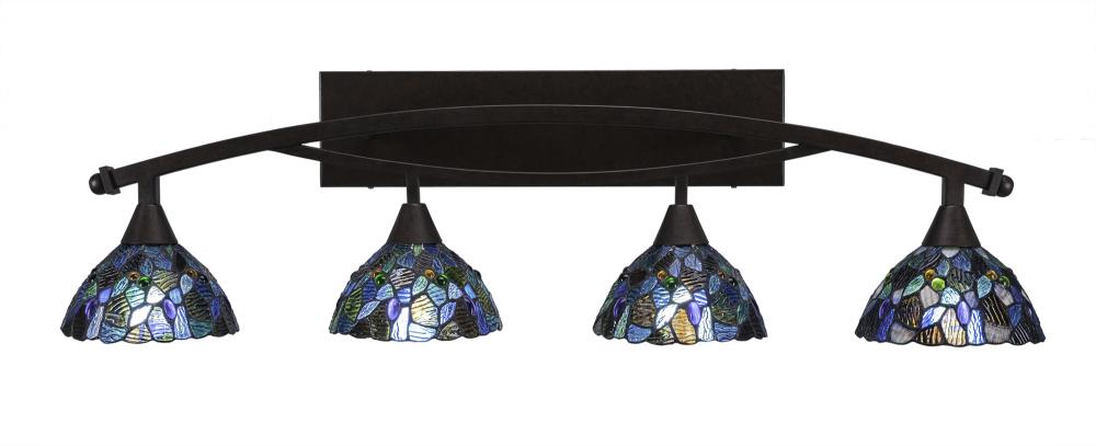 Toltec Lighting 174-BRZ-9955 Bow 4 Light Bath Bar Shown In Bronze Finish with 7 Blue Mosaic Art Glass