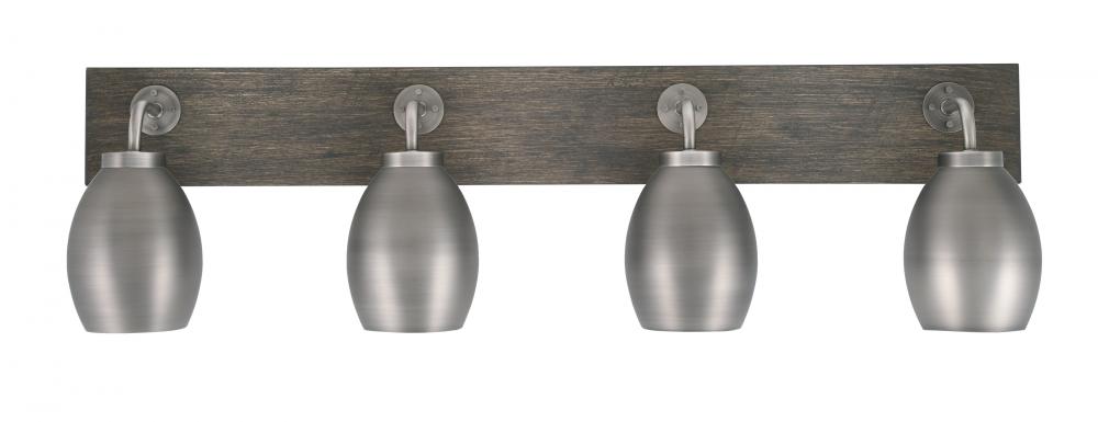 Toltec Lighting 1774-GPDW-426-GP Oxbridge 4 Light Bath Bar Shown In Graphite & Painted Distressed Wood-look Metal Finish With 5 Graphite Oval Metal Shades