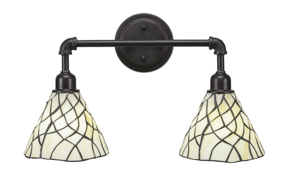 Vintage 2 Light Bath Bar Shown In Dark Granite Finish with 7 Sandhill Art Glass
