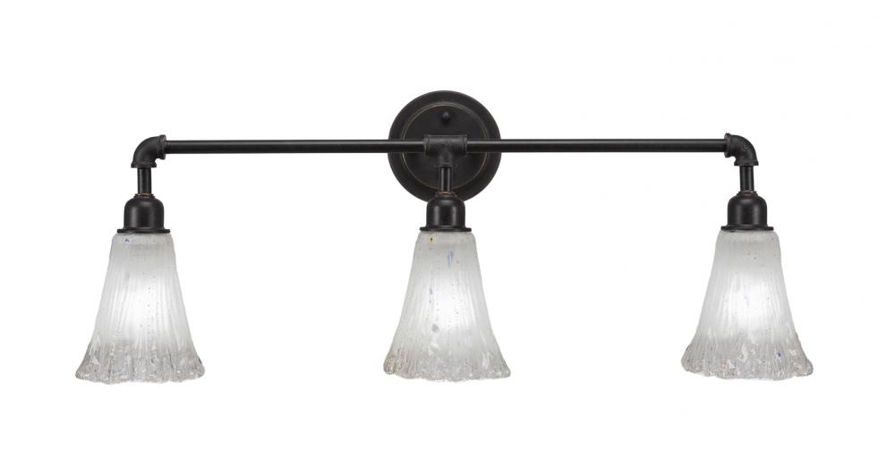 Toltec Lighting 183-DG-721 Vintage 3 Light Bath Bar Shown In Dark Granite Finish with 5.5 Fluted Frosted Crystal Glass