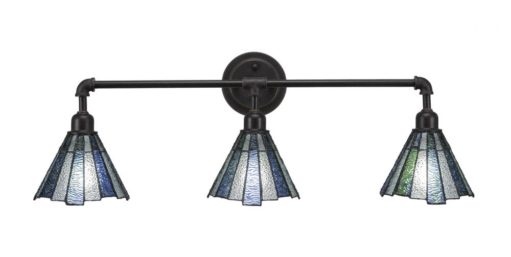Toltec Lighting 183-DG-9325 Vintage 3 Light Bath Bar Shown In Dark Granite Finish with 7 Sea Ice Art Glass