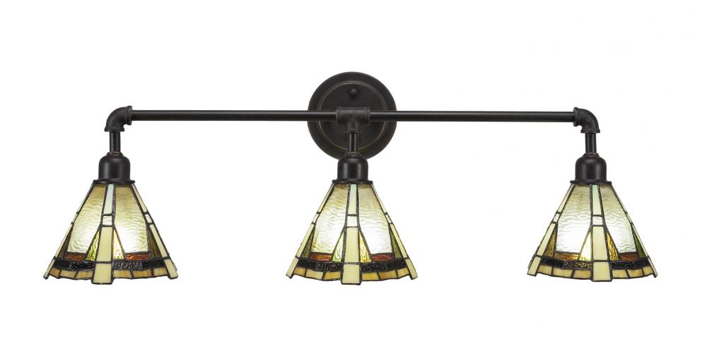 Toltec Lighting 183-DG-9345 Vintage 3 Light Bath Bar Shown In Dark Granite Finish with 7 Zion Art Glass