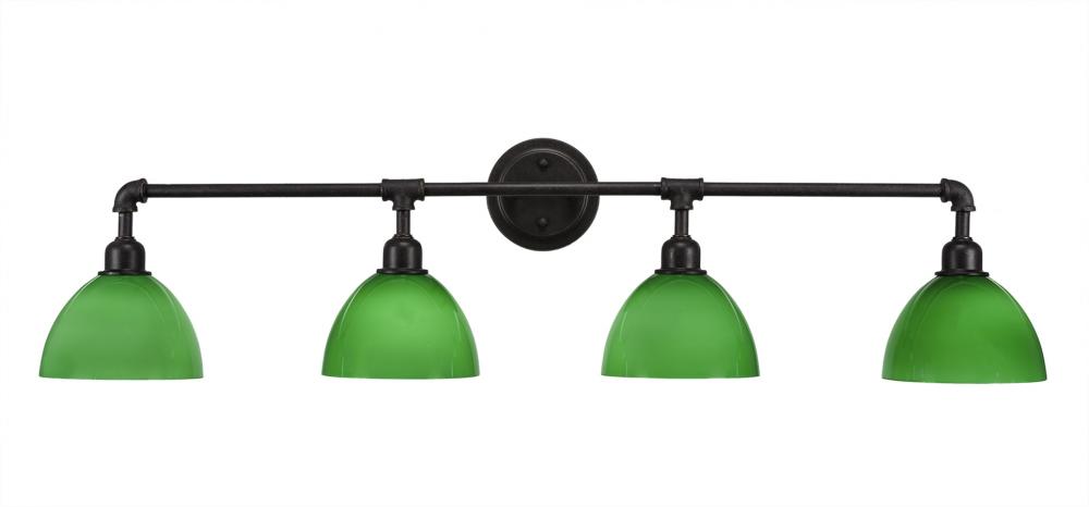 Toltec Lighting 184-DG-4015 Vintage 4 Light Bath Bar Shown In Dark Granite Finish with 7 Green Glass
