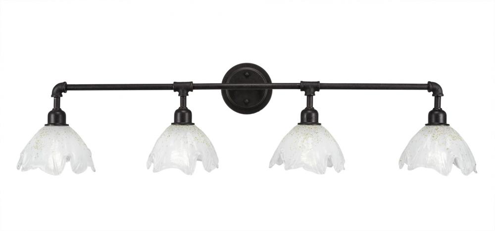 Toltec Lighting 184-DG-755 Vintage 4 Light Bath Bar Shown In Dark Granite Finish with 7 Gold Ice Glass