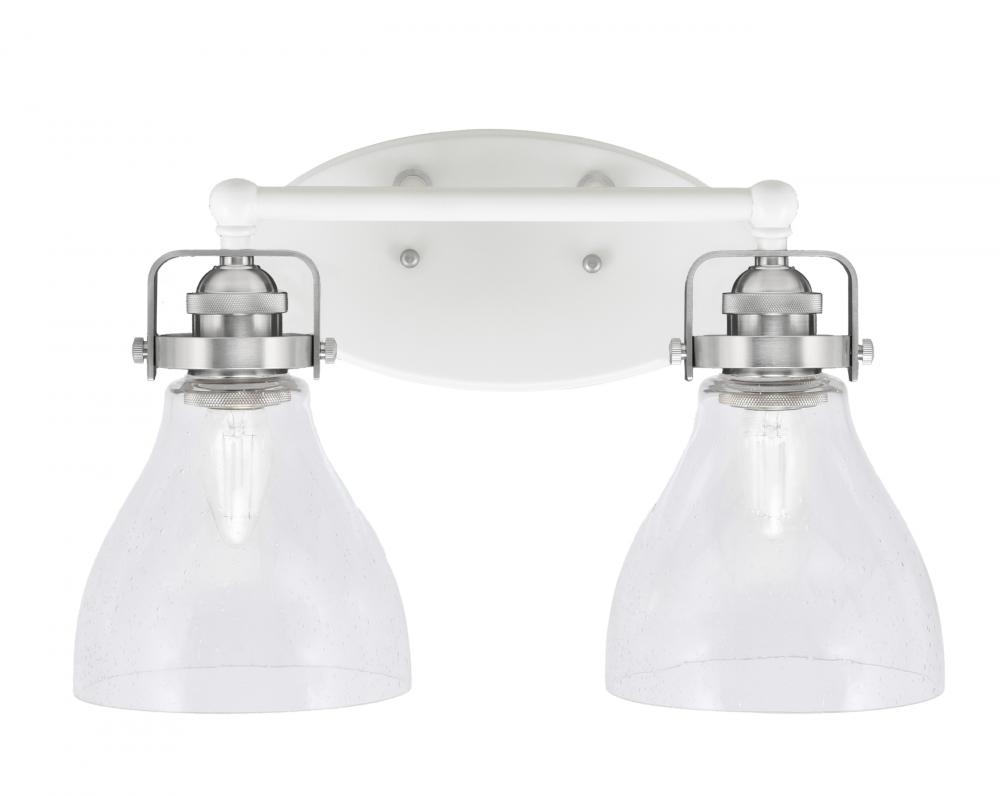 Toltec Lighting 1932-WHBN-4760 Easton 2 Light Bath Bar Shown In White & Brushed Nickel Finish With 6.25 Clear Bubble Glass