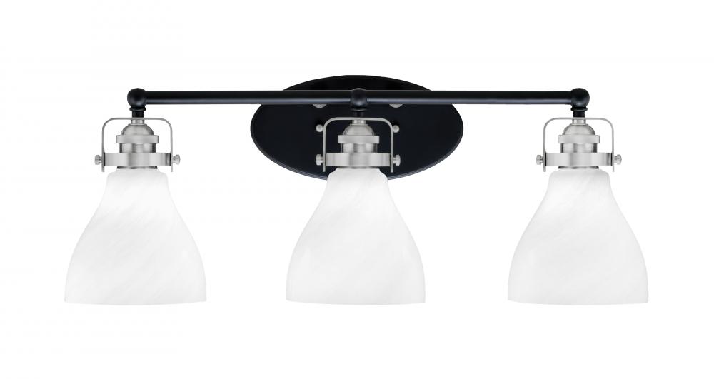 Toltec Lighting 1933-MBBN-4761 Easton 3 Light Bath Bar Shown In Matte Black & Brushed Nickel Finish With 6.25 White Marble Glass