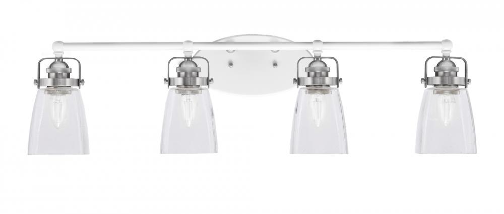 Toltec Lighting 1934-WHBN-461 Easton 4 Light Bath Bar Shown In White & Brushed Nickel Finish With4.5 Square Clear Bubble Glass