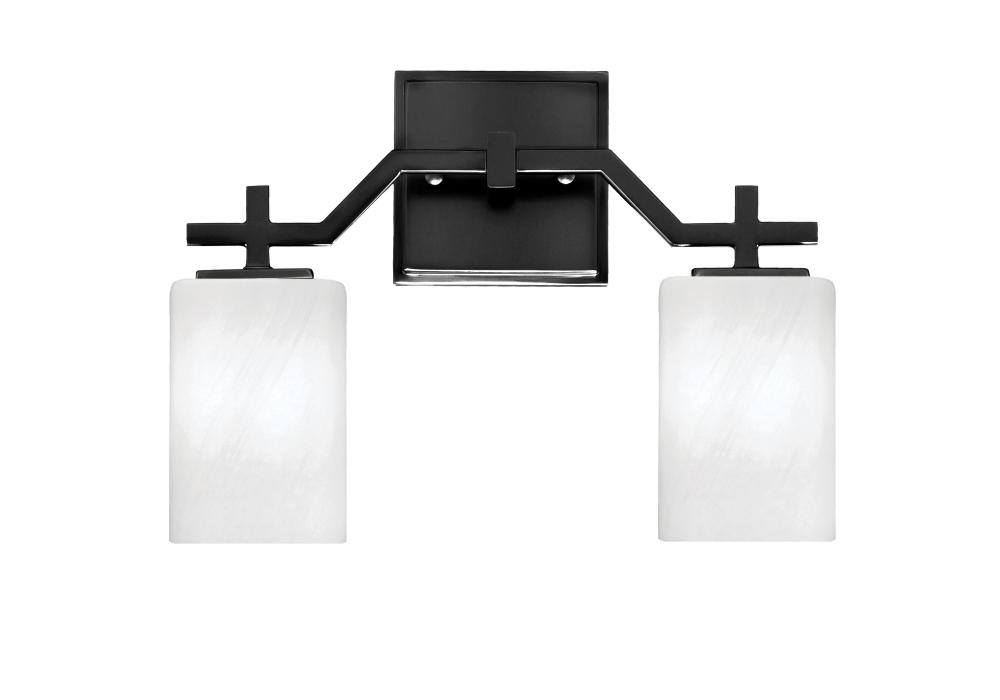 Corbin 2 Light Bath Bar Shown In Matte Black Finish With 4 White Marble Glass