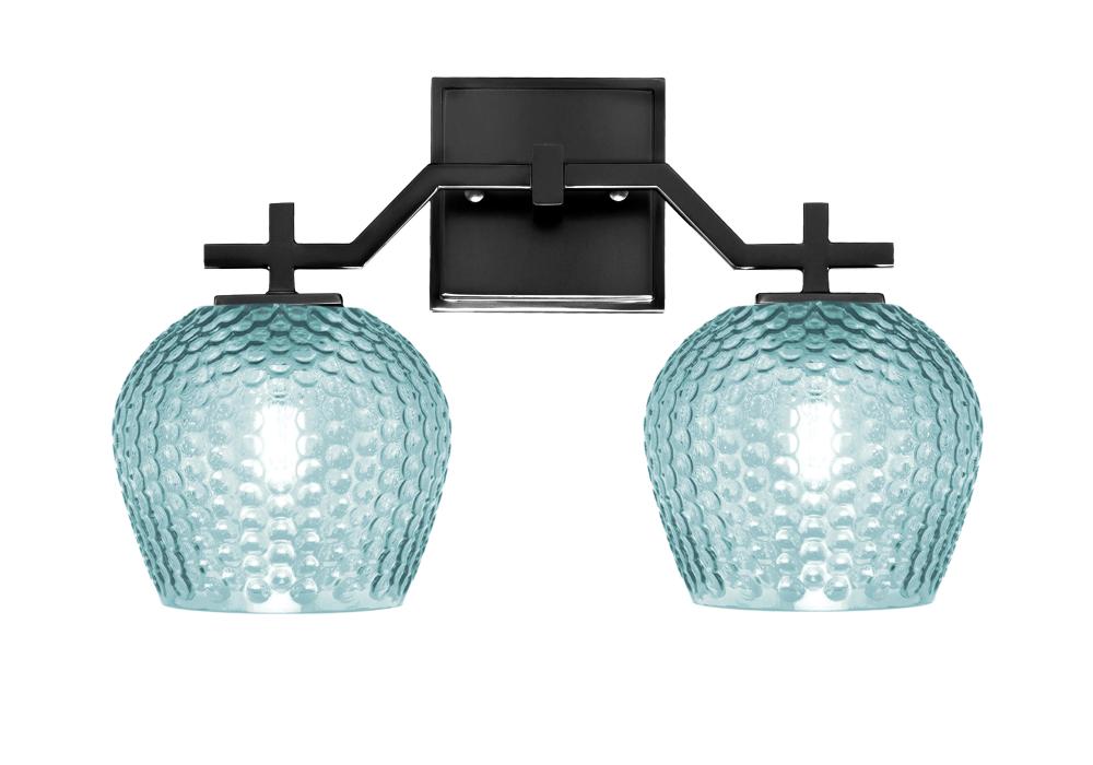 Corbin 2 Light Bath Bar Shown In Matte Black Finish With 6 Turquoise Textured Glass