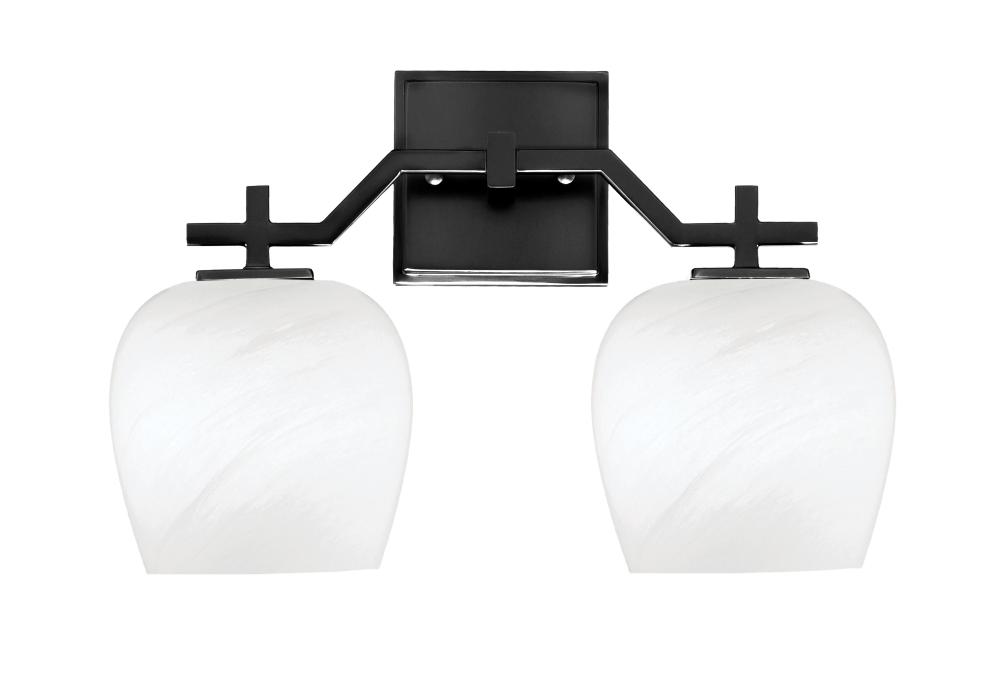 Corbin 2 Light Bath Bar Shown In Matte Black Finish With 6 White Marble Glass