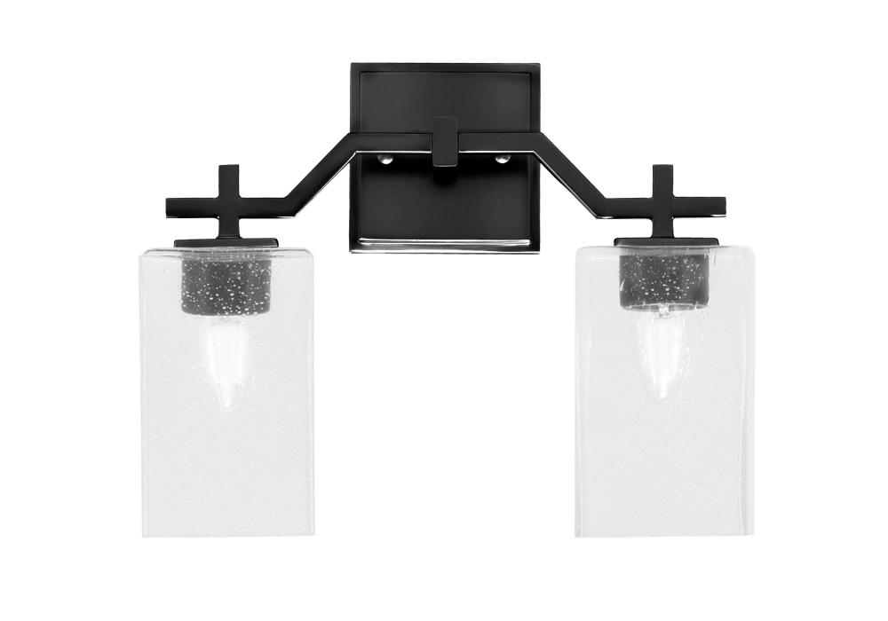 Corbin 2 Light Bath Bar Shown In Matte Black Finish With 4 Square Clear Bubble Glass