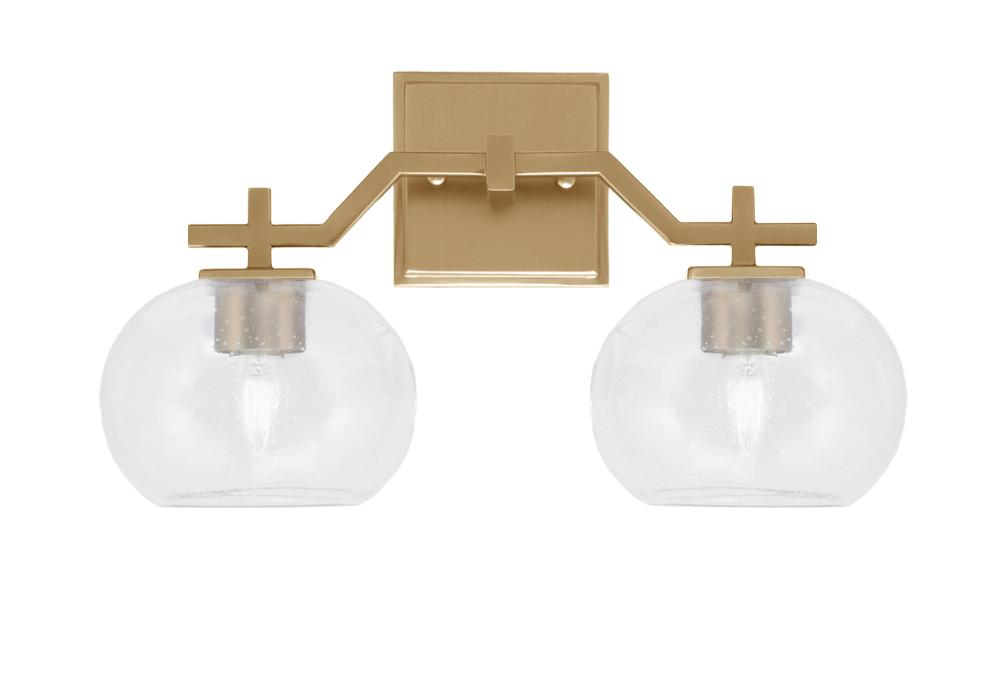 Corbin 2 Light Bath Bar Shown In New Age Brass Finish With 7 Clear Bubble Glass