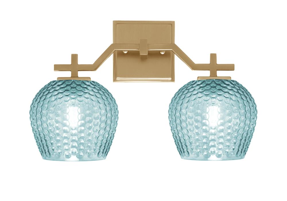 Corbin 2 Light Bath Bar Shown In New Age Brass Finish With 6 Turquoise Textured Glass