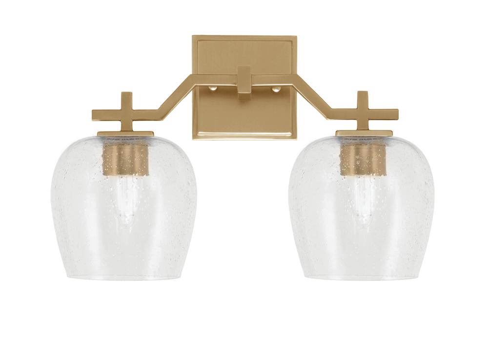 Corbin 2 Light Bath Bar Shown In New Age Brass Finish With 6 Clear Bubble Glass