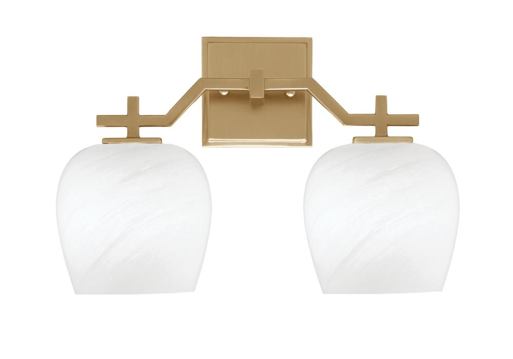 Corbin 2 Light Bath Bar Shown In New Age Brass Finish With 6 White Marble Glass