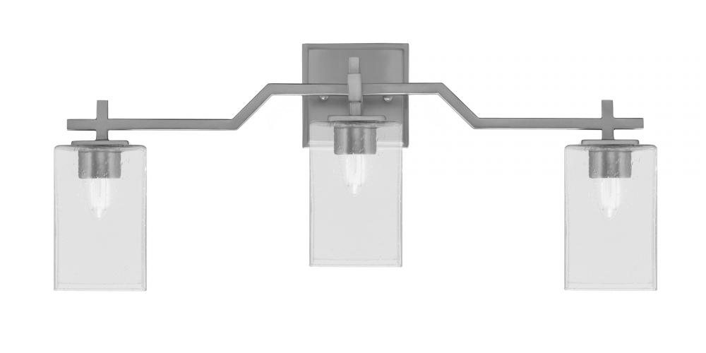 Corbin 3 Light Bath Bar Shown In Graphite Finish With 4 Square Clear Bubble Glass