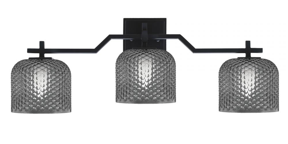 Corbin 3 Light Bath Bar Shown In Matte Black Finish With 6 Smoke Textured Glass