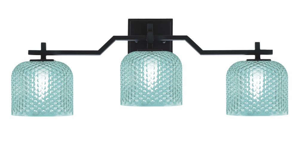 Corbin 3 Light Bath Bar Shown In Matte Black Finish With 6 Turquoise Textured Glass