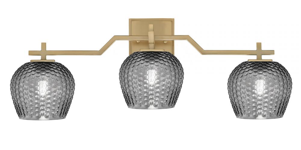 Corbin 3 Light Bath Bar Shown In New Age Brass Finish With 6 Smoke Textured Glass
