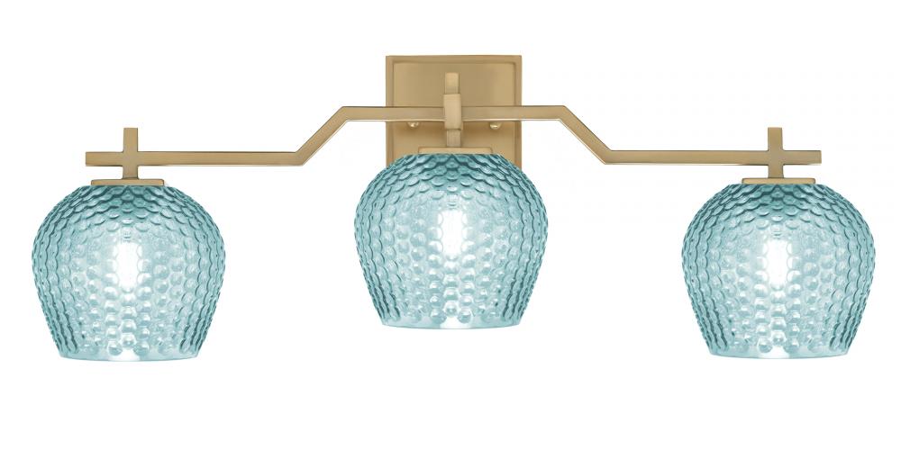 Corbin 3 Light Bath Bar Shown In New Age Brass Finish With 6 Turquoise Textured Glass
