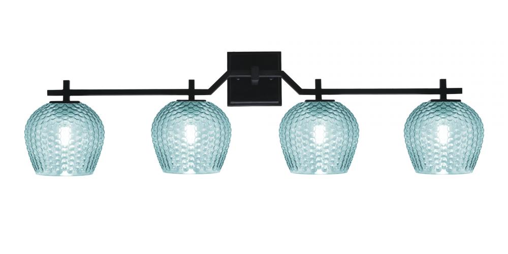 Corbin 4 Light Bath Bar Shown In Matte Black Finish With 6 Turquoise Textured Glass
