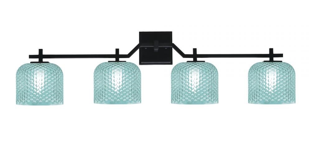 Corbin 4 Light Bath Bar Shown In Matte Black Finish With 6 Turquoise Textured Glass