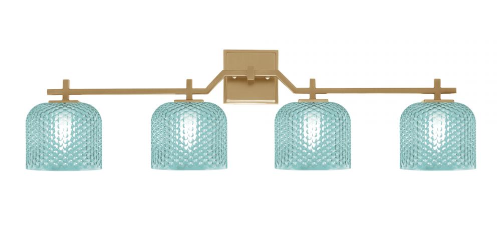 Corbin 4 Light Bath Bar Shown In New Age Brass Finish With 6 Turquoise Textured Glass