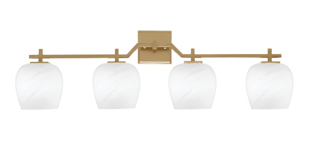 Corbin 4 Light Bath Bar Shown In New Age Brass Finish With 6 White Marble Glass
