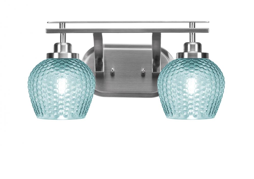 Odyssey 2 Light Bath Bar Shown In Brushed Nickel Finish With 6 Turquoise Textured Glass