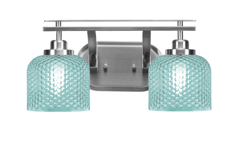 Odyssey 2 Light Bath Bar Shown In Brushed Nickel Finish With 6 Turquoise Textured Glass