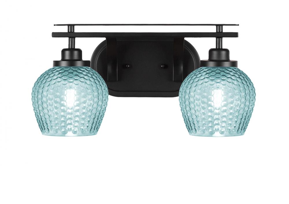Odyssey 2 Light Bath Bar Shown In Matte Black Finish With 6 Turquoise Textured Glass