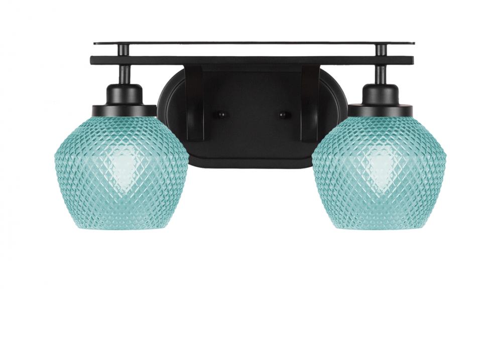 Odyssey 2 Light Bath Bar Shown In Matte Black Finish With 6 Turquoise Textured Glass
