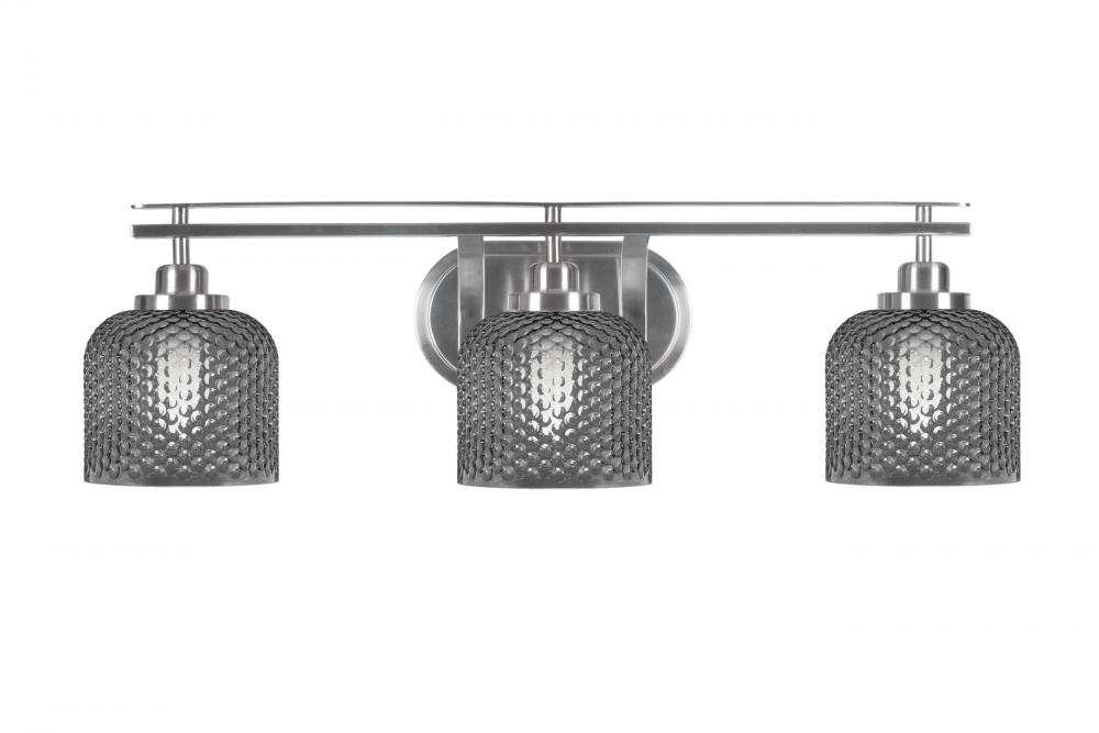 Odyssey 3 Light Bath Bar Shown In Brushed Nickel Finish With 6 Smoke Textured Glass
