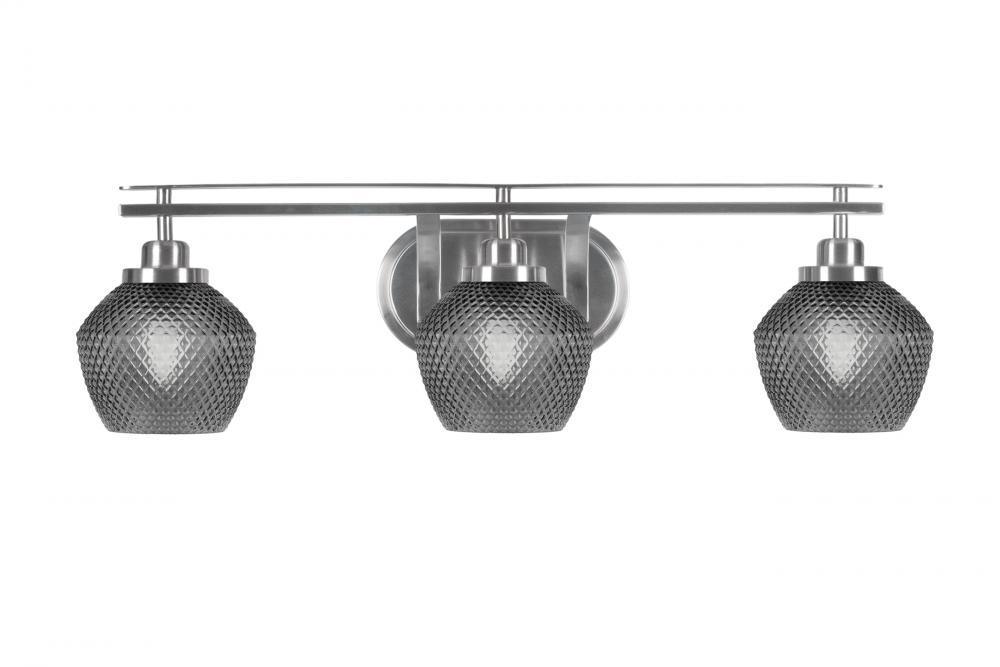 Odyssey 3 Light Bath Bar Shown In Brushed Nickel Finish With 6 Smoke Textured Glass