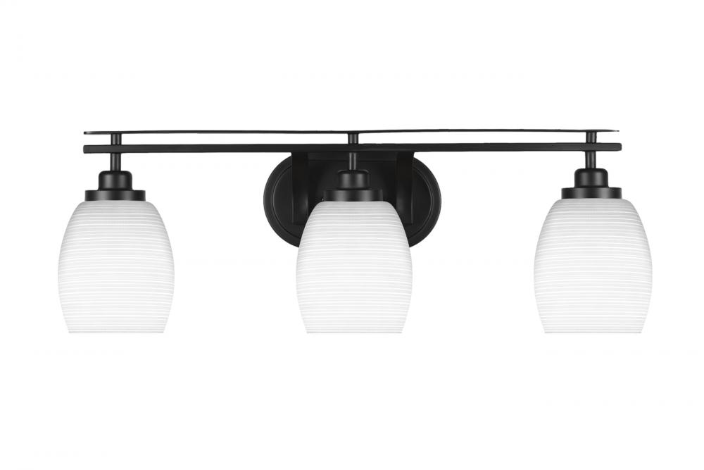 Toltec Lighting 2613-MB-4021 Odyssey 3 Light Bath Bar Shown In Matte Black Finish With 5 White Matrix Glass