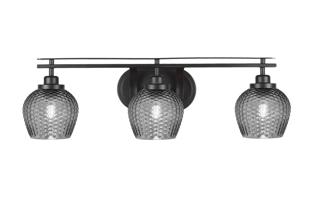Odyssey 3 Light Bath Bar Shown In Matte Black Finish With 6 Smoke Textured Glass