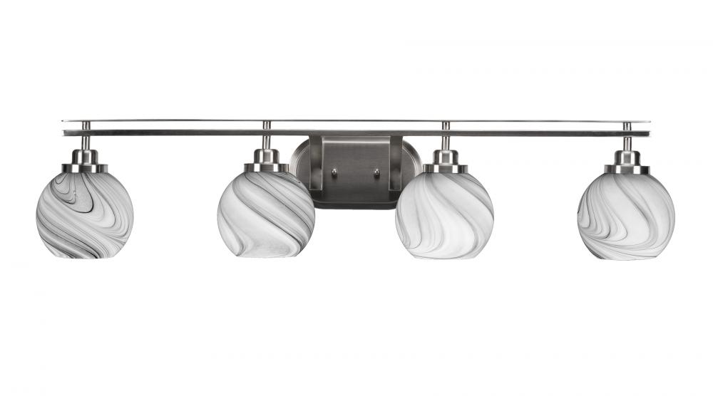 Toltec Lighting 2614-BN-4109 Odyssey 4 Light Bath Bar Shown In Brushed Nickel Finish With 5.75 Onyx Swirl Glass