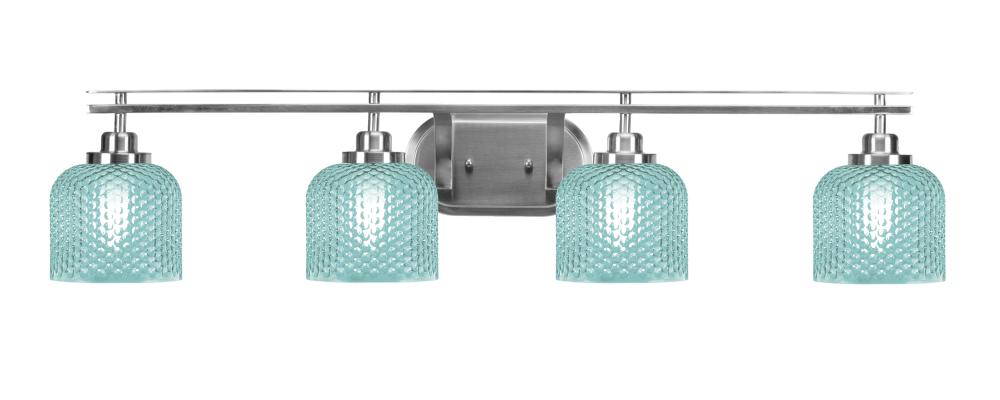 Odyssey 4 Light Bath Bar Shown In Brushed Nickel Finish With 6 Turquoise Textured Glass