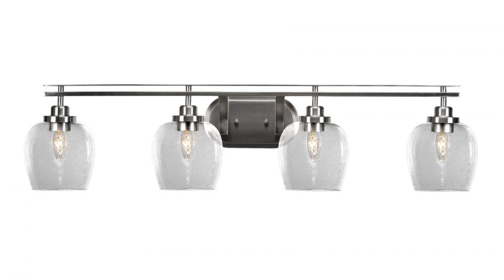 Toltec Lighting 2614-BN-4810 Odyssey 4 Light Bath Bar Shown In Brushed Nickel Finish With 6 Clear Bubble Glass