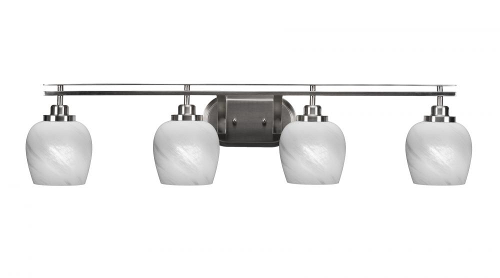 Toltec Lighting 2614-BN-4811 Odyssey 4 Light Bath Bar Shown In Brushed Nickel Finish With 6 White Marble Glass