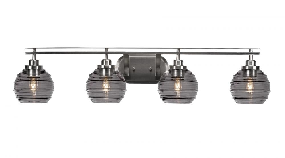 Toltec Lighting 2614-BN-5112 Odyssey 4 Light Bath Bar Shown In Brushed Nickel Finish With 6 Smoke Ribbed Glass