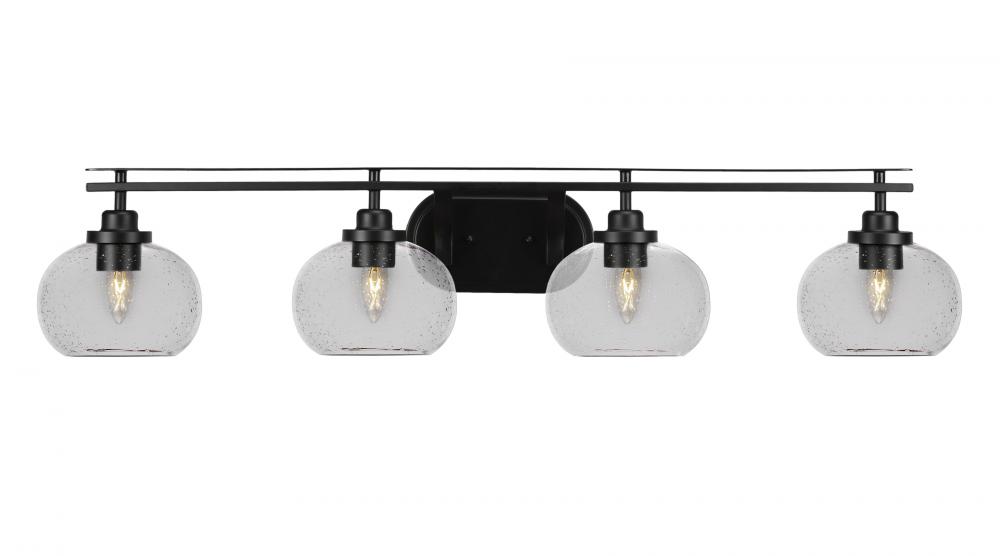 Toltec Lighting 2614-MB-202 Odyssey 4 Light Bath Bar Shown In Matte Black Finish With 7 Clear Bubble Glass