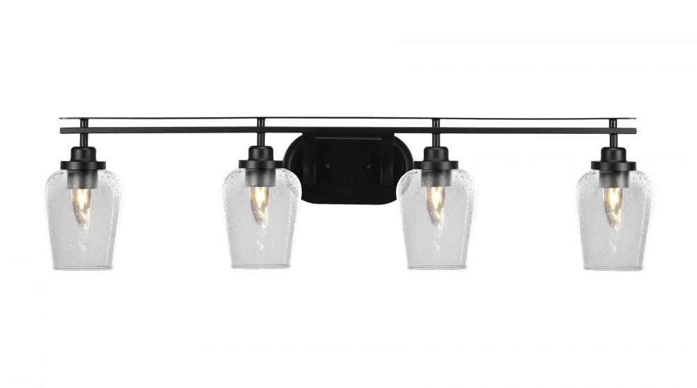 Toltec Lighting 2614-MB-210 Odyssey 4 Light Bath Bar Shown In Matte Black Finish With 5 Clear Bubble Glass