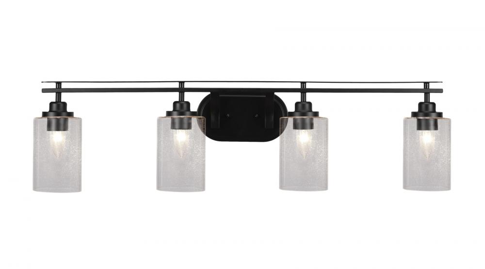 Toltec Lighting 2614-MB-300 Odyssey 4 Light Bath Bar Shown In Matte Black Finish With 4 Clear Bubble Glass